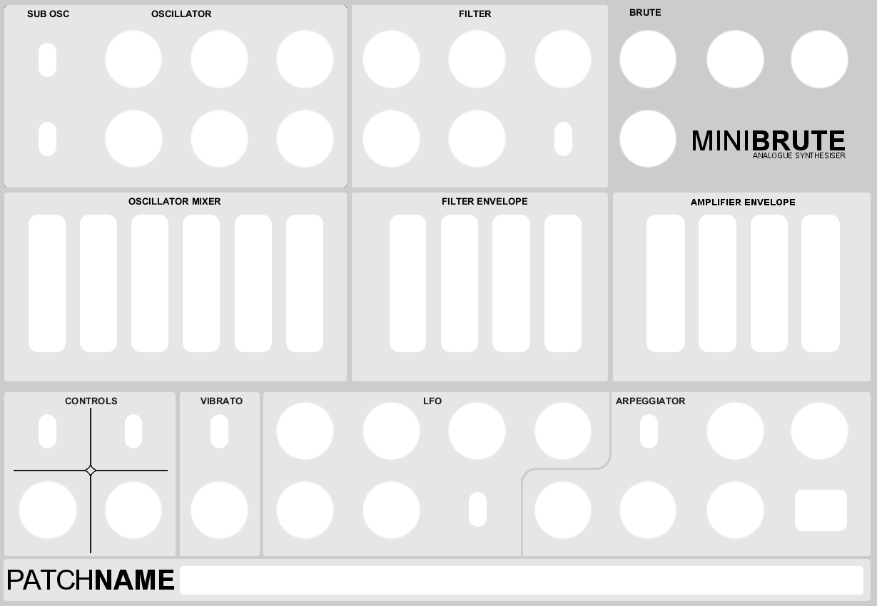 Col minibrute ti danno dei fogli con i "factory preset" ed un set di fogli bianchi per le "user patch" emo (spero almeno le immagini te le facciano vedere...)