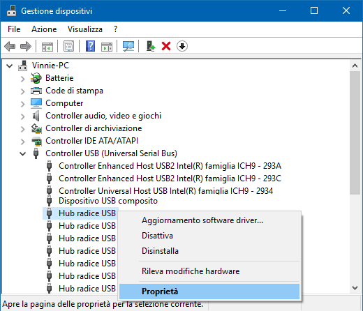 Hai provato a disistallare gli hub radice USB, in periferiche e dispositivi di sistema, e riavviare?
